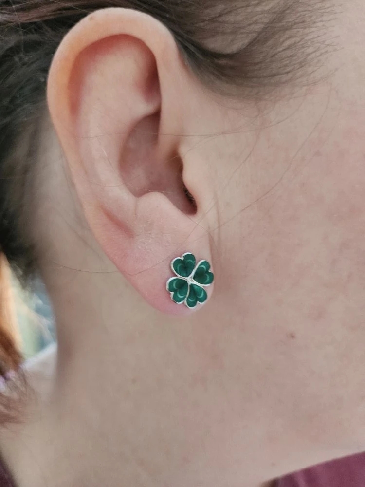 Асимметричные пусеты в виде листочков клевера получились невероятно реалистичными. Легкие, компактные и в то же время заметные благодаря сложной технике горячей эмали. Мы долго искали и подбирали «тот самый» цвет и не зря.